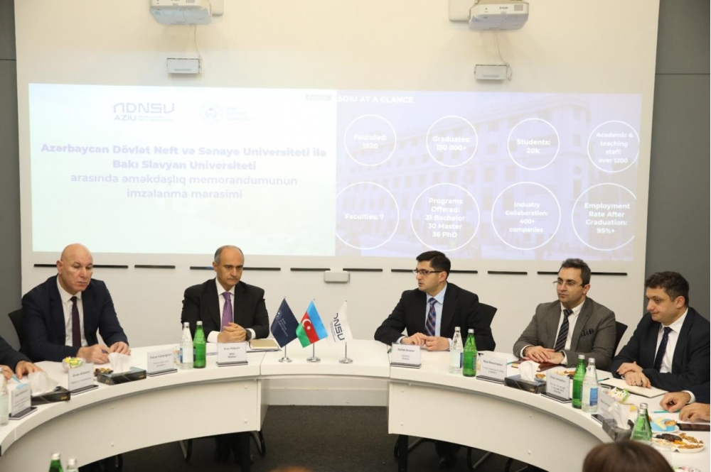 Fevralın 24-də Bakı Slavyan Universiteti (BSU) ilə Azərbaycan Dövlət Neft və Sənaye Universiteti (ADNSU) arasında birgə layihələrin həyata keçirilməsi nəzərdə tutulan Əməkdaşlıq memorandumu imzalanıb.