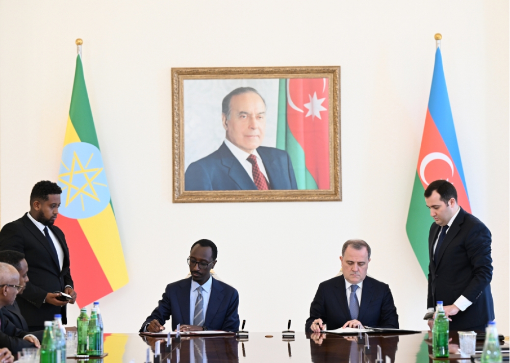 “İki sahil” xəbər verir ki, sonra Azərbaycan Prezidenti İlham Əliyevin və Efiopiyanın Baş naziri Abiy Əhməd Əlinin iştirakı ilə Azərbaycanın xarici işlər naziri Ceyhun Bayramov və Efiopiyanın xarici işlər naziri Qedion Timoteos "Azərbaycan Respublikası ilə Efiopiya Federativ Demokratik Respublikası Hökuməti arasında müdafiə sahəsində əməkdaşlıq haqqında Saziş”i və “Birləşmiş Millətlər Təşkilatının İqlim Konfransının (COP32) otuz ikinci sessiyasının təşkilində əməkdaşlıq haqqında Anlaşma Memorandumu”nu imzaladılar.