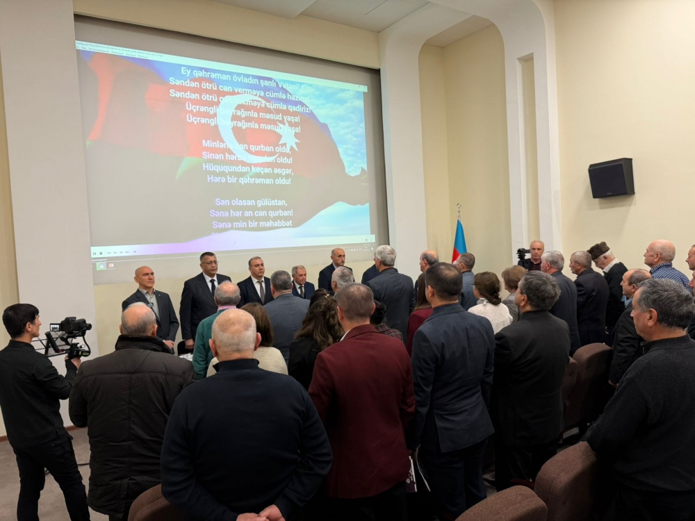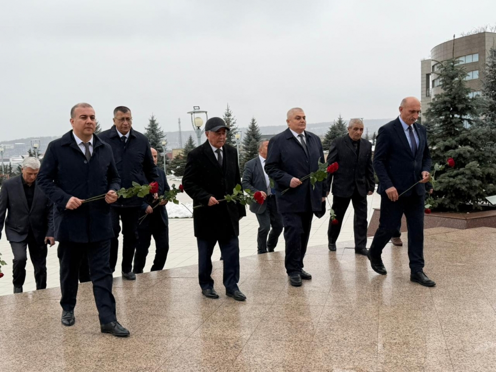 “İki sahil” xəbər verir ki,  Azərbaycan Respublikasının Dövlət Himninin səsləndirilməsi ilə başlayan tədbirdən öncə Ülü Öndər Heydər Əliyevin abidəsinin önünə tər güllər düzülüb.