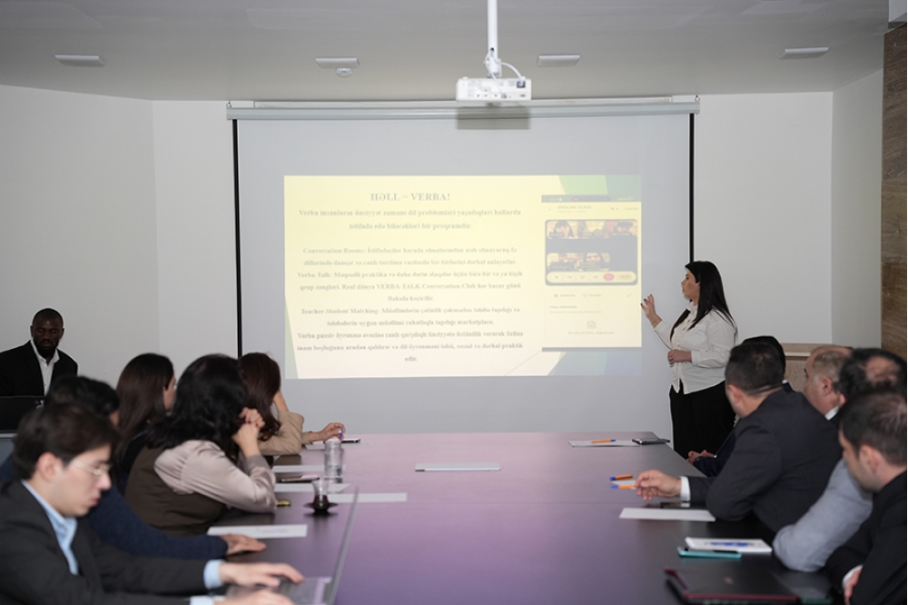 Təlimin növbəti hissəsində Bakı Biznes Universitetinin tələbələri öz startup layihələrinin təqdimatını həyata keçiriliblər. Tələbələr öz ideyalarını təqdim edərək startup layihələrinin məqsədi, hədəf auditoriyası, həll etdiyi problem, tətbiq mexanizmi və inkişaf potensialı barədə məlumat veriblər. Bununla yanaşı, layihə təqdimatları üzrə mentorluq xidməti və interaktiv startup müzakirələri təşkil olunub. Təlim proqramının yekununda Bakı Biznes Universitetinin tələbələrinə sertifikatlar təqdim edilib.