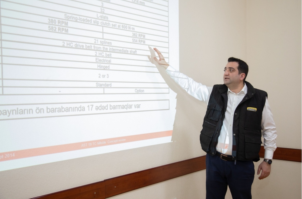 Təlimdə istehsalçı şirkətin nümayəndəsi iştirak edərək mexanizatorlara New Holland texnikalarının istismar xüsusiyyətləri barədə ətraflı məlumat verib. Təlim zamanı kombaynın quruluşu, işləmə prinsipi, idarəetmə sistemi, texniki baxış qaydaları və mümkün nasazlıqların aradan qaldırılması üsulları izah olunub. Təlimdə Masallı, Biləsuvar, Qobustan, Ağcabədi və Sabirabad rayonlarından olan mexanizatorlar iştirak ediblər.