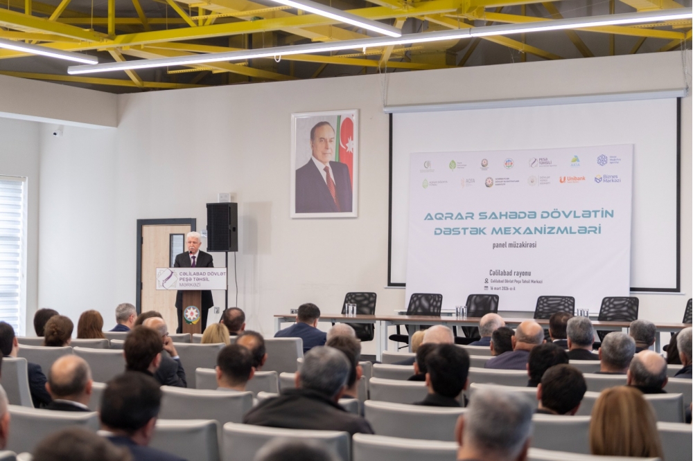 “İki sahil” xəbər verir ki, tədbirdə dövlət qurumlarının və özəl maliyyə təşkilatlarının nümayəndələrinin iştirakı ilə kənd təsərrüfatı sektorunda tətbiq olunan dövlət dəstəyi mexanizmləri, fermer və sahibkarların mövcud imkanlardan daha səmərəli istifadə etməsi, eləcə də aqrar sahədə biznes mühitinin inkişafı istiqamətində geniş fikir mübadiləsi aparılıb.