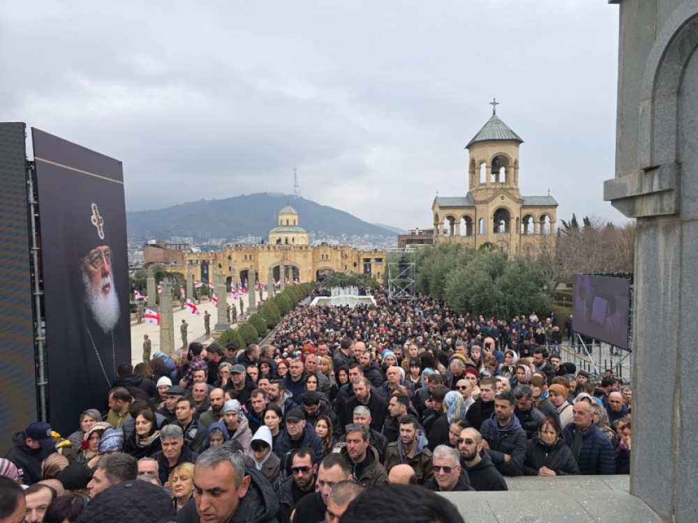Patriarx II İliya Sameba (Müqəddəs Üçlük) Kafedralından Sioni məbədinə böyük izdihamın müşayiəti, “Səni sevirik, Patriarx!” şüarları və alqışlarla yola salınıb. Sameba kilsəsindən Sioni kilsəsinə qədər olan yol boyunca əllərində Gürcüstan bayraqları tutan hərbi qulluqçulardan ibarət fəxri qarovul düzülüb.