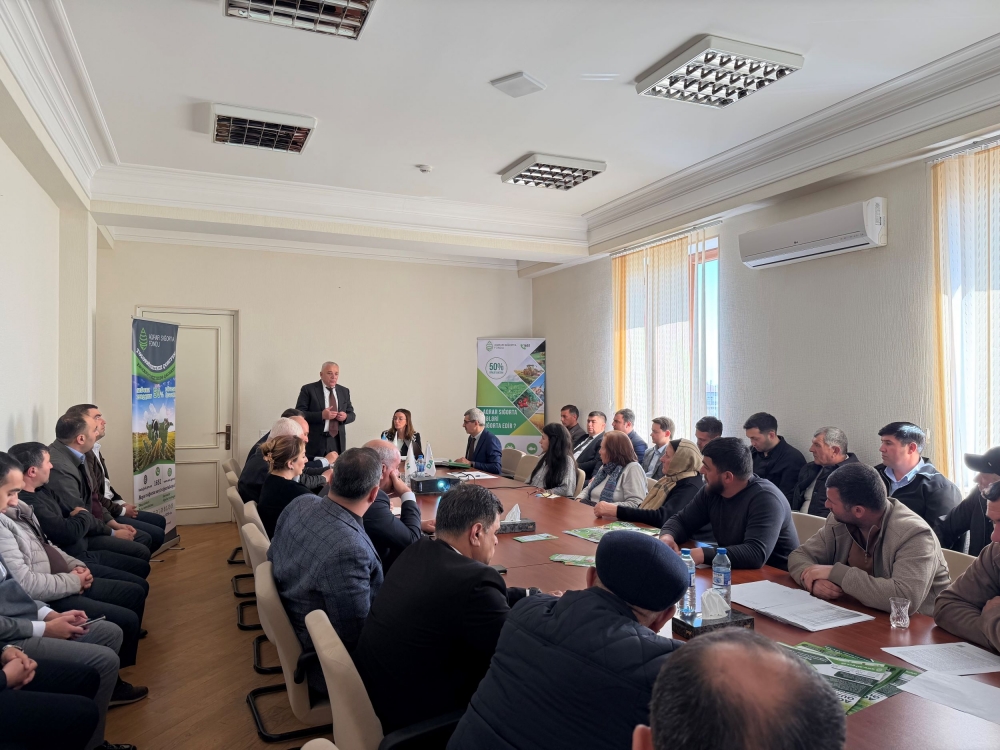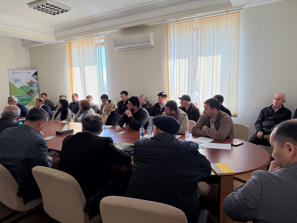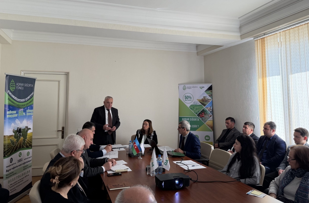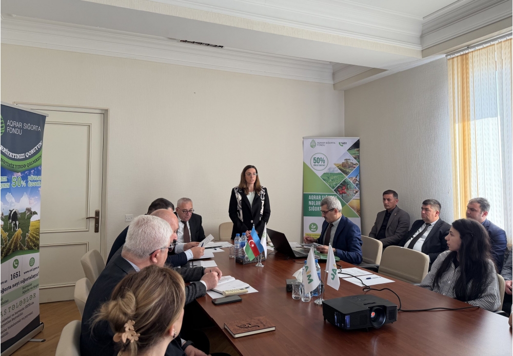 Tədbirdə iştirak edən Aqrar Sığorta Fondu İdarə Heyətinin üzvü Roman Əmircanov aqrar sığorta mexanizmi və Fondun fəaliyyəti barədə məlumat verib. Onun sözlərinə görə, Prezident İlham Əliyevin fərmanı ilə yaradılmış Aqrar Sığorta Fondu bitkiçilik, heyvandarlıq və balıqçılıq təsərrüfatlarını sığortalayır. Fermerlərə dəstək məqsədilə sığorta haqqının yarısını dövlət ödəyir, nəticədə cüzi məbləğlə təsərrüfatları və əkin sahələrini sığortalamaq mümkündür. R. Əmircanov bildirib ki, son günlər yağan güclü yağışlar səbəbindən ölkənin bir sıra bölgələrindən Aqrar Sığorta Fonduna zərər müraciətləri daxil olmaqdadır. Müraciətlər Xaçmaz, Şabran, Quba, Qusar, Siyəzən, Şamaxı, Ağsu, Qobustan, Ağcabədi və sair rayonlardan daxil olur. Bildirilib ki, hər bir müraciət qeydə alınır, hadisənin araşdırılması və dəymiş zərərlərin hesablanması üçün ərazilərə aqrar sığorta ekspertləri göndərilir.