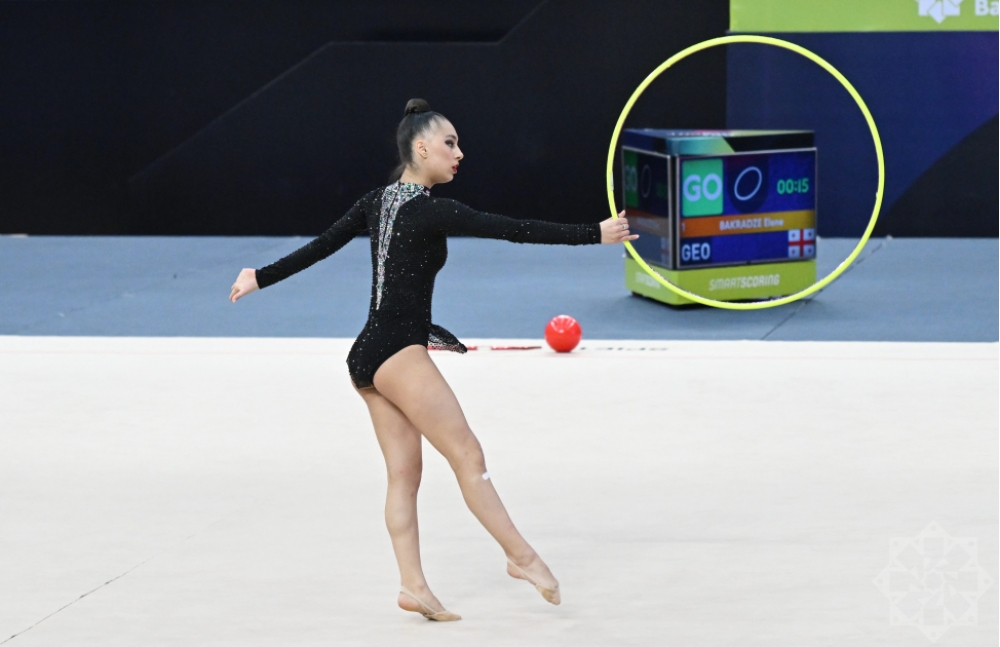 İlk günün təsnifat mərhələsinə əsasən halqa ilə proqramda Gövhər İbrahimova və Kamilla Seyidzadə, top ilə proqramda Kamilla Seyidzadə, Fidan Qurbanlı və Azadə Atakişiyeva final mərhələsinə yüksəliblər.