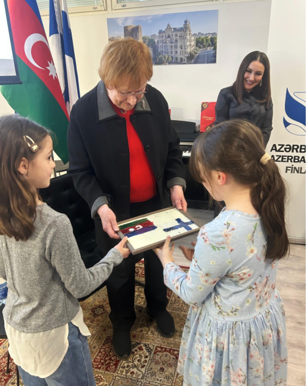 Tədbir zamanı yazıçı və tərcüməçi Tahirə Cəfərova tərəfindən Azərbaycan ədəbiyyatından fin dilinə tərcümə edilmiş kitablar Tarja Halonenə hədiyyə edilib. Həmçinin Azərbaycan Evinin şagirdləri tərəfindən hazırlanmış əl işləri ona təqdim olunub.
