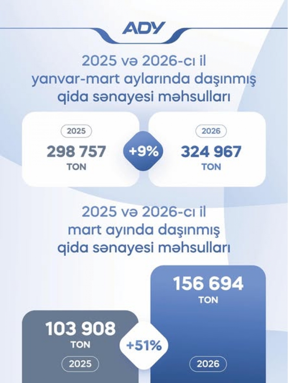 Eyni zamanda, analoji məhsulların 2026-cı ilin birinci rübü üzrə daşınması 325 min tona yaxın təşkil edib və ötən ilin eyni dövrünü 9% üstələyib.