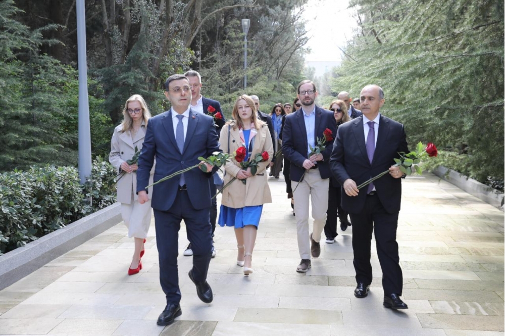 “İki sahil” xəbər verir ki, ilk olaraq konfrans iştirakçıları Fəxri Xiyabanı ziyarət edərək xalqımızın Ümummilli Lider Heydər Əliyevin məzarını ziyarət edərək onun xatirəsini ehtiramla yad ediblər.