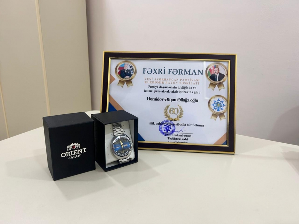 Görüşün sonunda Əfqan Həmidova partiya dəyərlərinin təbliğində və ictimai proseslərdə aktiv iştirakına görə və 60 illik yubileyi münasibətilə Fəxri Fərman və xatirə hədiyyəsi təqdim edilmişdir.