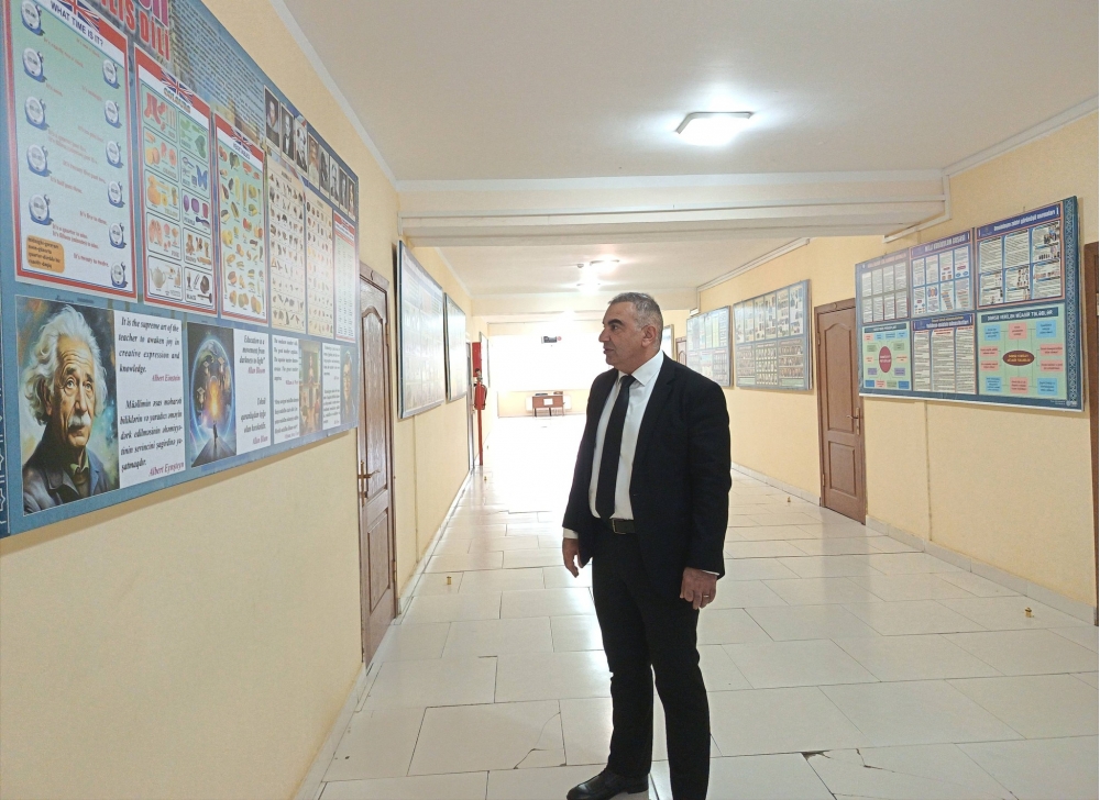 Rəhim müəllim həm də məktəbdə rəqəmsal bacarıqların tədrisi üçün yaradılmış otaqlara baxıb, burada formalaşdırılmış şərait və mövcud imkanlar barədə ona danışılıb. Təhsil ocağının foyesində və dəhlizlərində müxtəlif fənlər üzrə hazırlanmış fotostendlər də onu razı salıb. Məktəbdə son dövrlərdə həyata keçirilən işlər və yeniliklər ətrafında fikir mübadiləsi aparılıb.