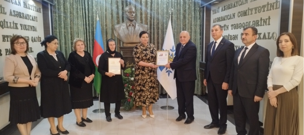 Görüşdə YAP Bərdə rayon təşkilatının sədri Faqət Şadlinskaya YAP Bərdə rayon təşkilatının yubilyar üzvlərini Fəxri Fərmanla təltif edib və hədiyyələrlə mükafatlandırıb.