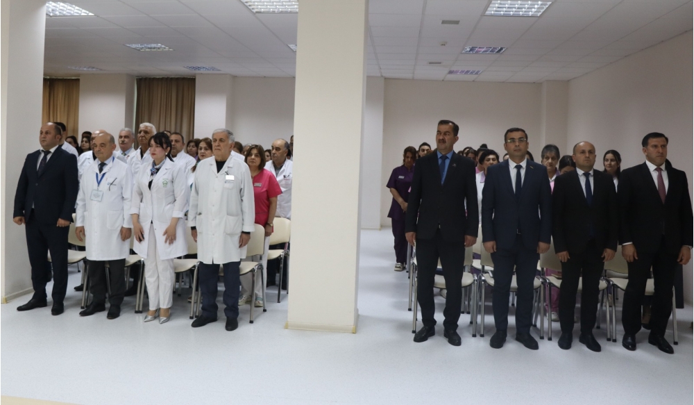 “İki sahil” xəbər verir ki, Rayon Mərkəzi Xəstəxanasının akt zalında təşkil olunan tədbirdə Ağdaş Rayon İcra Hakimiyyətinin başçısı Orxan Hüseynzadə, YAP Ağdaş rayon təşkilatının sədri Əlişah Rəcəbov, Millət vəkili Sahib Alıyev, həmçinin rayonun səhiyyə sisteminin rəhbərliyi, kollektivi, şəhid ailələrinin üzvləri, partiya fəalları və ictimaiyyət nümayəndələri iştirak ediblər. Tədbir Dövlət Himninin səsləndirilməsi ilə açıq elan olunub.