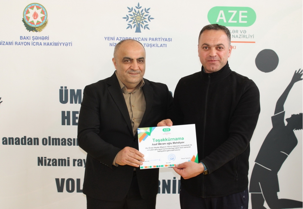 Nizami Rayon İcra Hakimiyyətinin, Yeni Azərbaycan Partiyası Nizami rayon təşkilatının və Nizami rayonu üzrə Gənclər və idman sektorunun birgə təşkilatçılığı ilə oğlanlar arasında voleybol yarışı keçirilib.